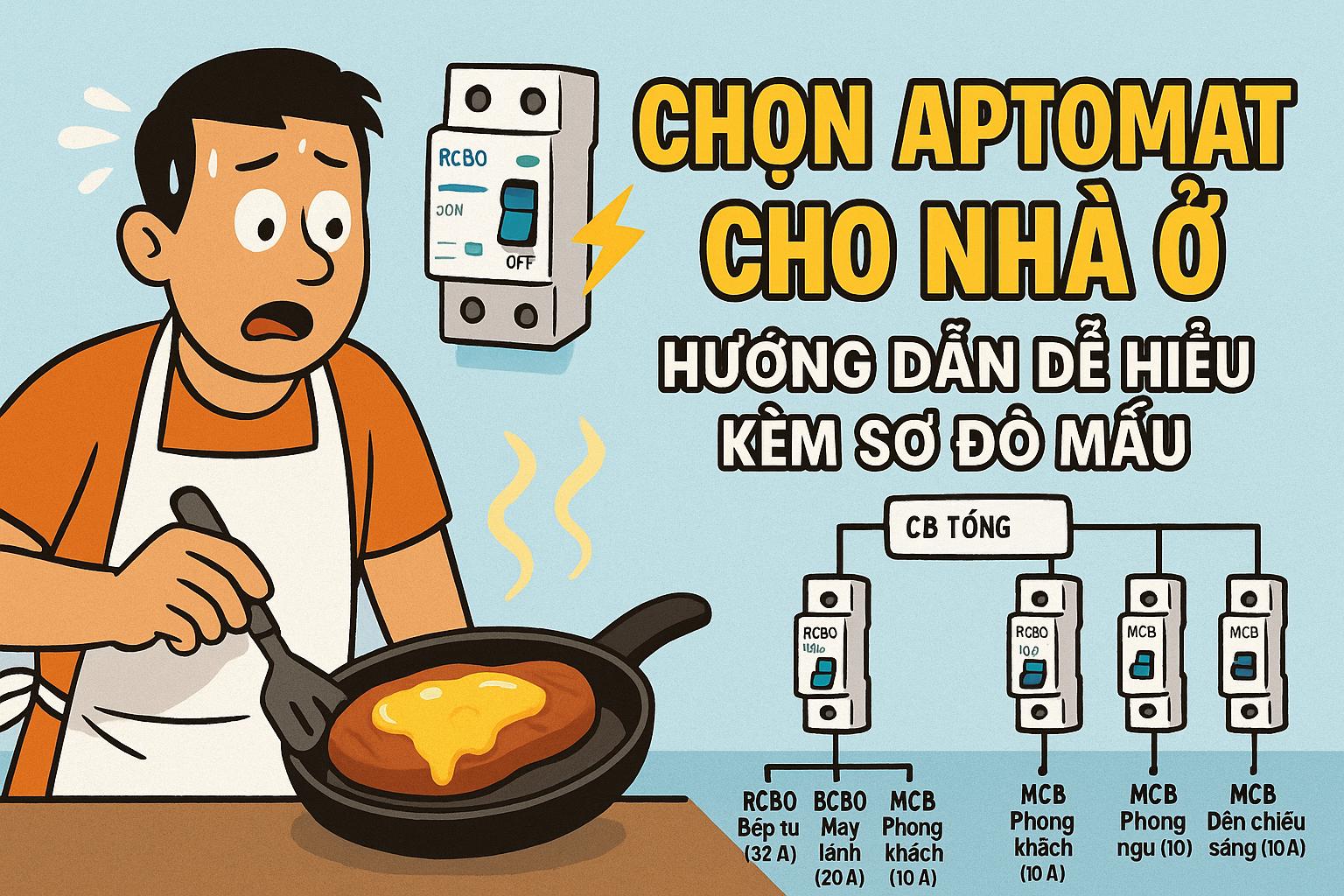 Đang làm món bò né với phô mai sáng sớm, khói bay nghi ngút, mùi thơm làm bụng réo liên hồi – tự nhiên khựng lại một cái: "Ủa khoan, cái CB – ông aptomat đó – chọn sao cho đúng ta?" Chứ đang chiên ngon lành mà điện cúp một cái, phô mai chưa kịp chảy đã khét, là hết vui cả buổi sáng 😅